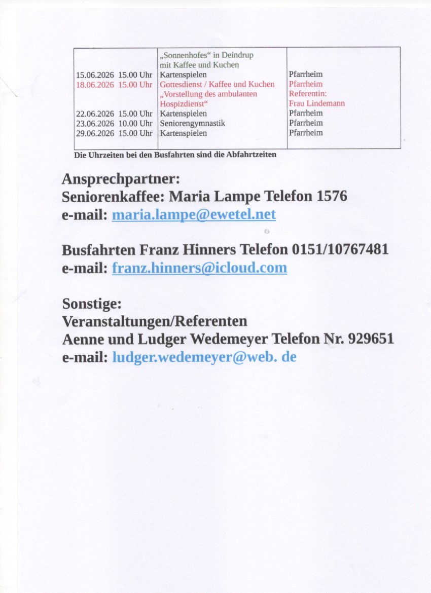 Veranstaltungskalender Seniorengemeinschaft 2 Halbjahr 2025